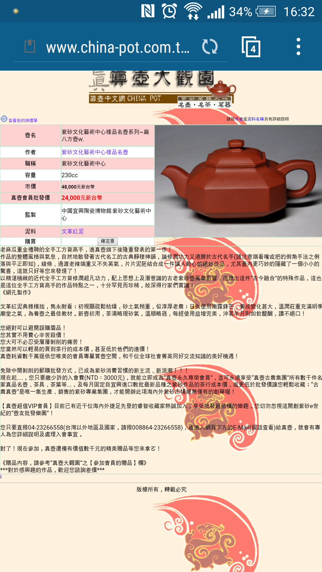 3.凡單筆交易購買壺、茶碗、雕塑或茶具達40001元新台幣(9201元人民幣)以上,至200000元新台幣(46000元人民幣)以下,則除了先扣掉入會時的3000元(690元人民幣)新台幣外,得再享8折的大回饋!