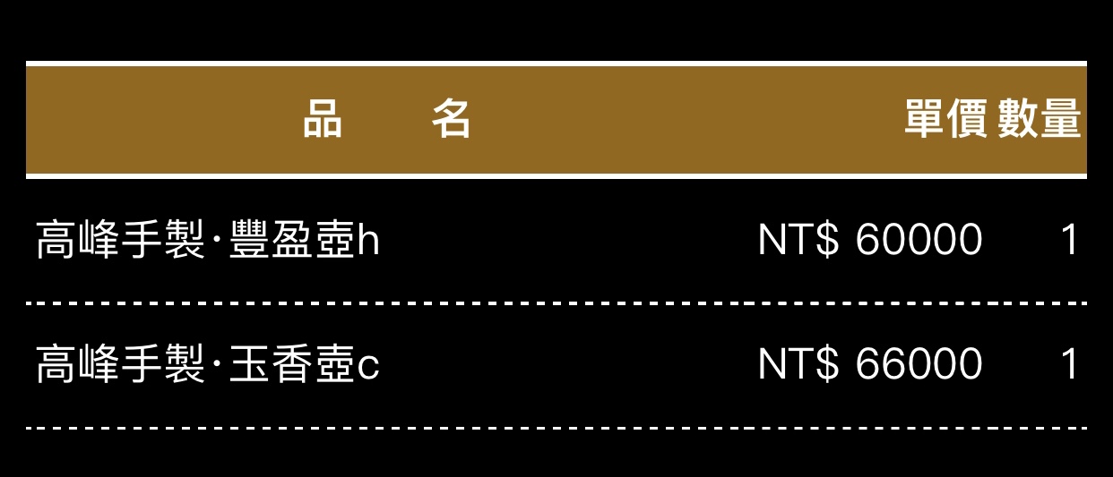 註B:因為高峰老師許多品種都僅剩一件孤品,故當您下訂後並不代表已購得此件作品,為公平起見,真壺山莊將以下單後的"付款順序"為依據,並盡速回覆您的訂單,謹此說明。