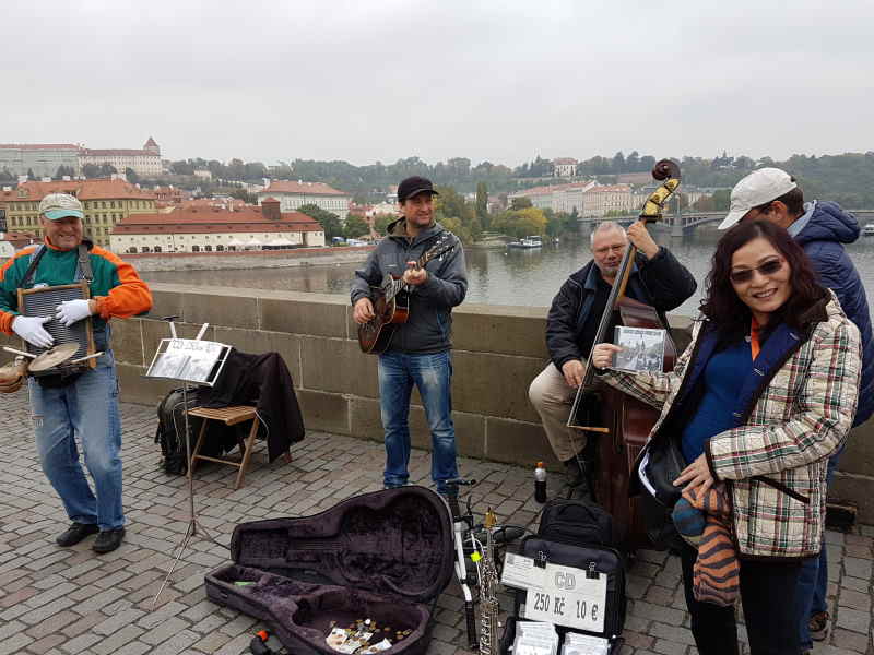 查理大橋上頭除了遊客,就是街頭藝人,尤其玩音樂的最多,真不愧是捷克!