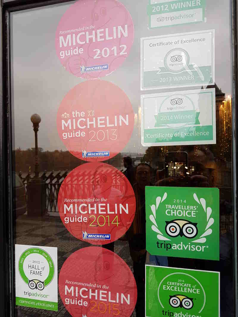 許多年份的米其林標章...,就貼在玻璃窗上頭以示身價。
