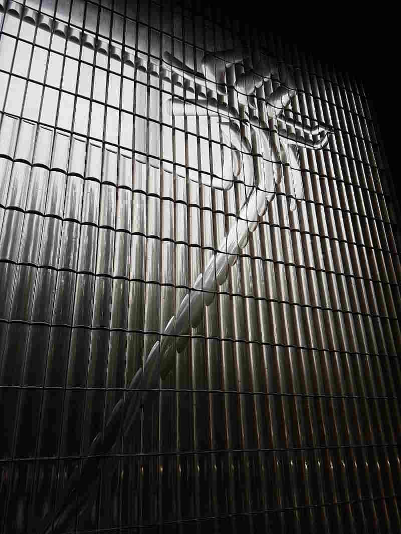答案是...,天文塔內的上下樓梯的轉角平階處,開了一片採光牆,是用透明玻璃砌起來的玻璃牆,竟不忘設計個花樣,很別緻。