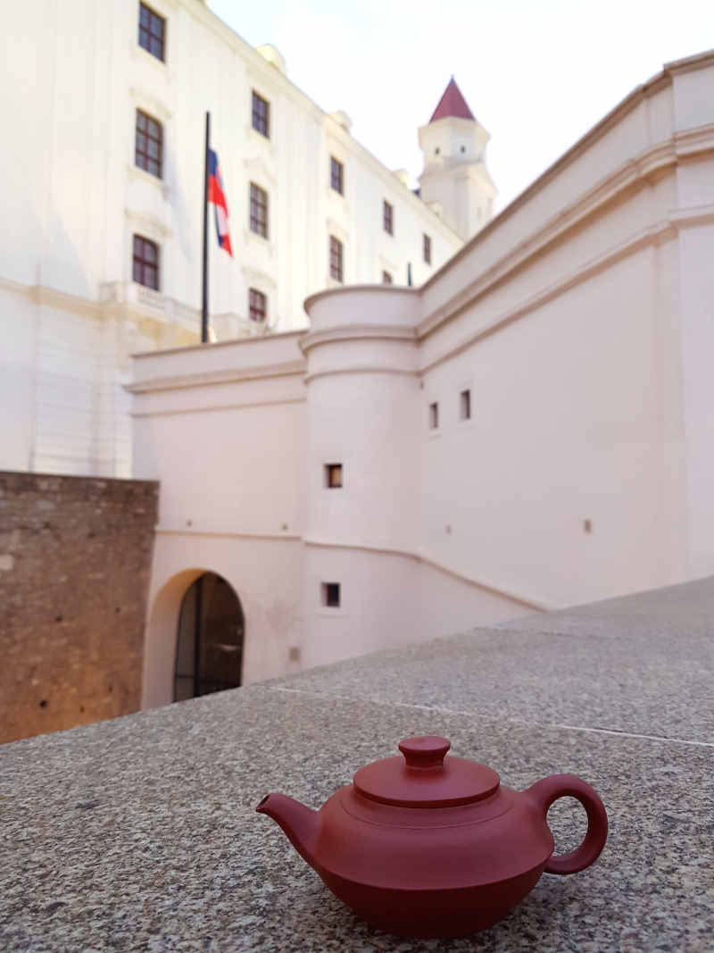 佇立在【布拉第斯拉瓦城堡】城牆上的太極壺,以多瑙河為背景,感覺很融入...。
