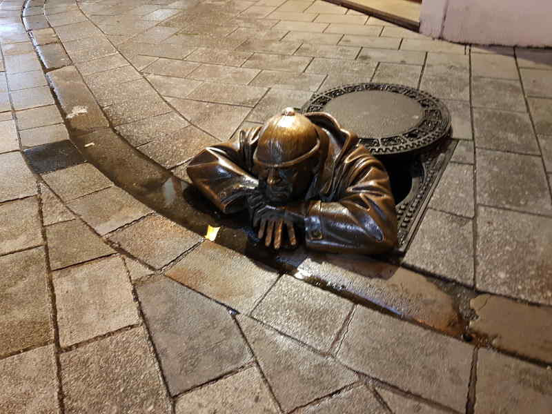 後來逐漸成為舊城廣場的特色人物,後人遂製作此件雕像紀念他。