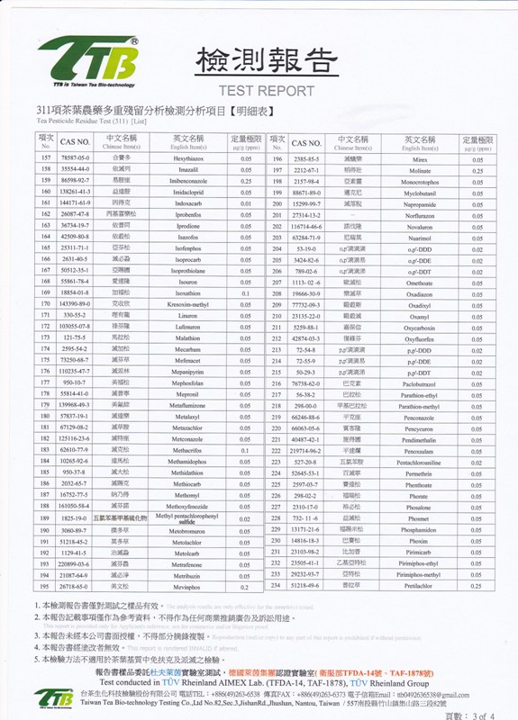 將製好的茶葉,直接採樣檢測十分嚴謹的311個項目,當然的,必然是輕鬆愉快的全數過關,真壺讓您買的放心、喝的安心!
