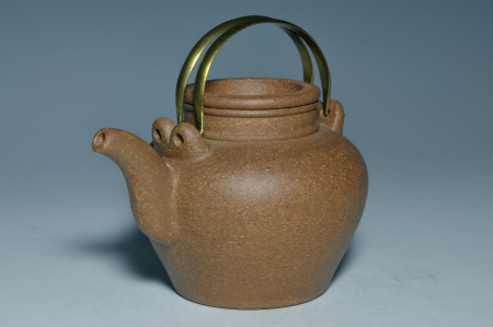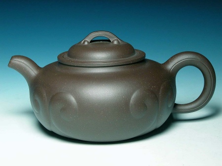 註:宜興三大名壺~【牛蓋洋筒壺•蛋包提樑壺•壽星壺】,乃清末民初宜興地區一帶最負盛名、最風行的品種之一,蓋其壺身呈圓筒狀,於冬季時利於抱在懷中充當懷爐禦寒,亦可讓壺於懷中時能更具茶湯保溫效果,可謂一舉兩得,此“宜興三大名壺”之壺嘴,幾與壺頸平且長伸,利於就口直倒茶湯入喉,為充份反應當時品茗文化的遺跡!