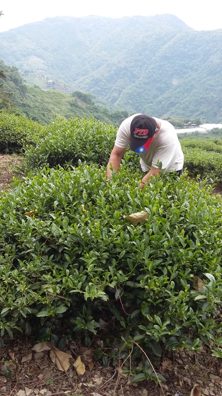 真壺特聘茶農~陳先生正勘查茶園情況,原來破壞茶叢的神秘客就是山中的"山豬兄"是也~