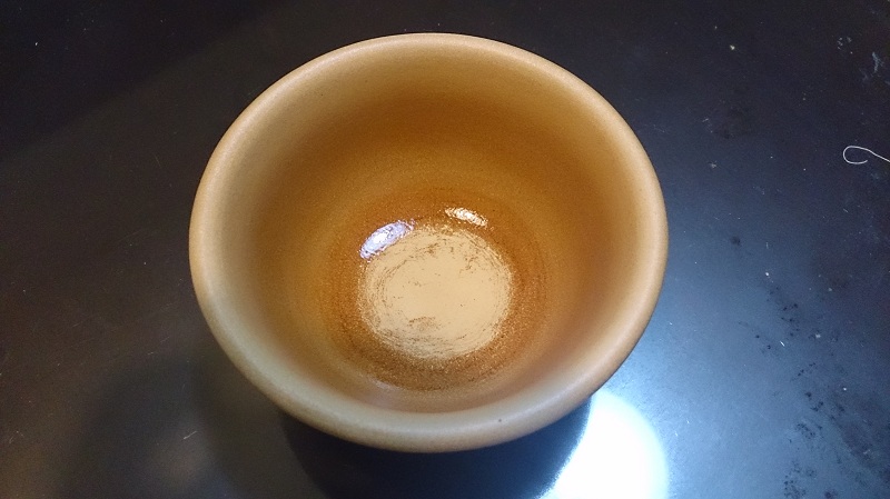 小弟藏壺不多迄今只有兩壺兩杯,的確,真壺泥料有獨到之處,相同茶葉用真壺的茶壺來泡會比其他的壺泡出來的茶湯香氣更加圓潤(另一把是紅泥薄胎);基本的養壺方法小弟也具備些入門知識,畢竟會買真壺產品的同好應有一定品茶之經驗;小弟的疑問是,為何經過菜瓜布刷洗後茶杯底部竟是出現像是一層表皮陶土被刮掉的顏色,由相片看出並不是黃袍子的本來顏色,若是茶漬茶垢被杯子均勻吸收理應全部被洗掉才對,另一個杯子蜜松碧也是如此,不知如何解釋這個現象?