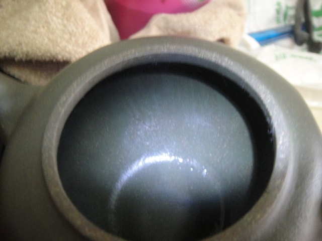 這麼壺內一番折騰整頓後,老麻瓜總結有四大好處,一來...將稀泥均勻分散於壺內壁,造成手工製造的視覺效果;二來...,可確保銜接面的穩固與絕無間隙(打橫刮一次,再打直刮一次);三來...,可將敲底章留下來的壺內底印痕除去大半;四來...,也是最重要的,留下與茶湯的真正接觸面(壺內壁)之恰當透氣性,蓋壺內以稀泥覆蓋並留下竹紋刮痕,配上壺外部的“光明針”,襯托出了宜興泥料“鏈狀氣孔結構”的加分效果,也就是千百年來宜興造壺的經驗累積,確定了“壺內刮稀泥”及“壺外光明針”的手法,能使宜興壺擁有驕傲於世“最恰當”的透氣性!