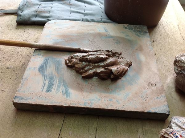製作過程中,作家會取少許泥料噴灑上清水,再用稀泥棒刮勻,使之呈泥狀,即稱之為"稀泥"(如圖所示)