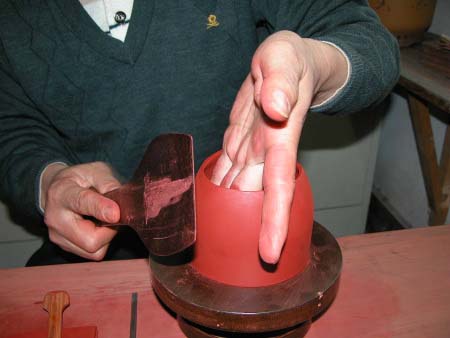 若擋胚成型做得比全手工佳時,豈不是美事一樁呢?(擋胚也要打身筒喔,基本上約有80%~85%的手工成份。)