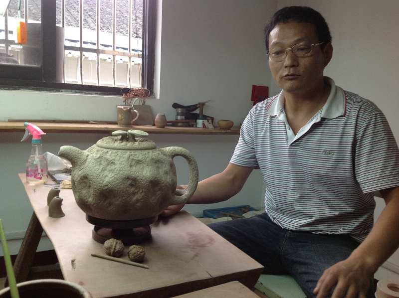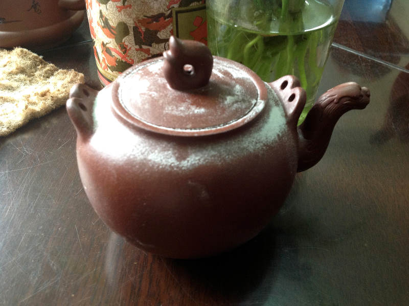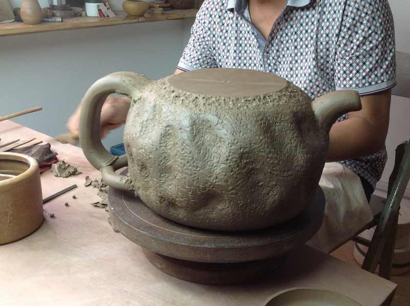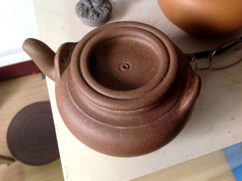 下午,人剛到宜興,老麻瓜進入“古陶研究所”,一眼見到許仲老師皺著眉頭,眼前擺著“大蛋包壺”(如圖),乃老麻瓜之前吩咐要與“大牛蓋洋筒壺”及“大壽星壺”湊成一套而製。