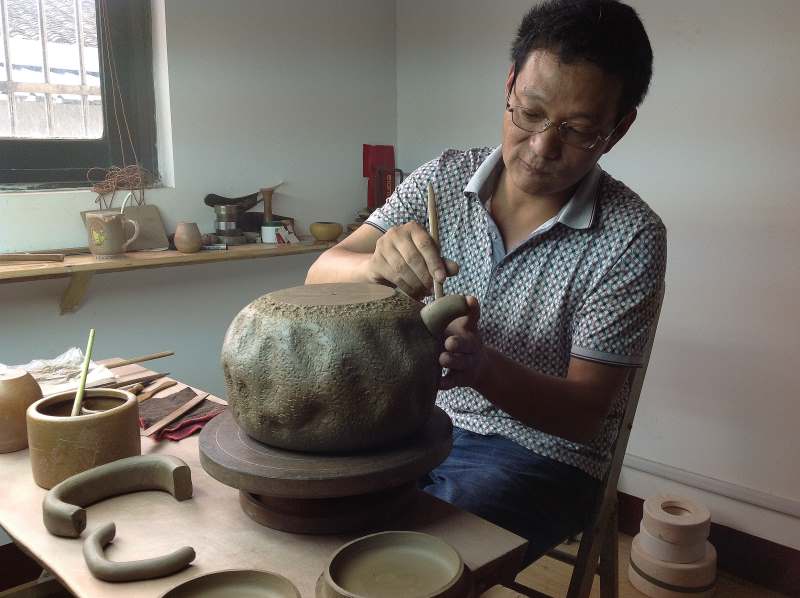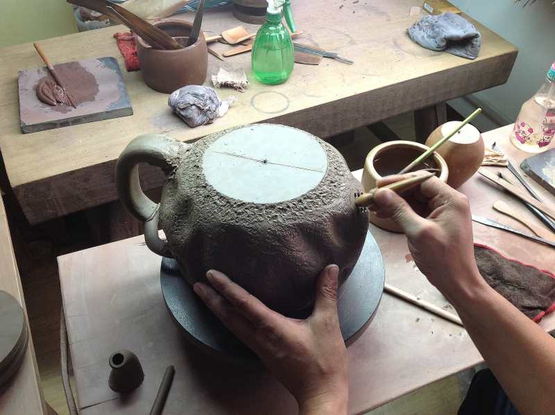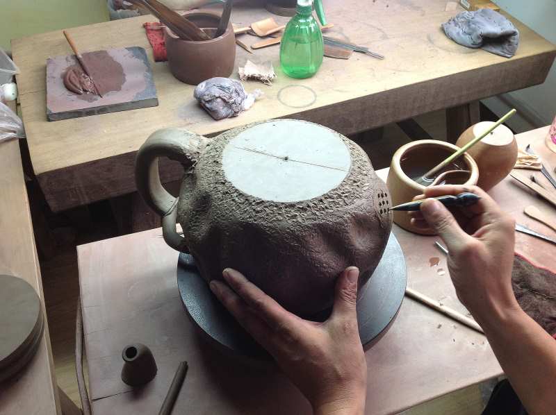 呵!呵!...供春壺身筒上的凹陷,全都是許仲老師用指節敲出來、手刀壓出來、手指等處信手拈出來的,所以才會有件件不同,渾然天成的形態,也是許仲老師手製“靈芝供春壺”最珍貴的典藏價值之一!
