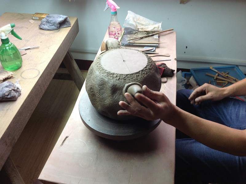 接好壺嘴與壺把後,大伙們再討論比率及線條過渡等等...。