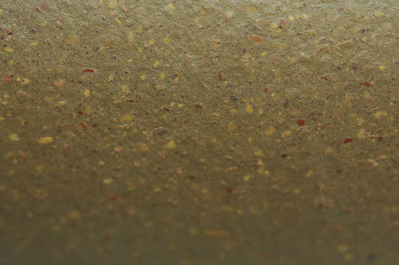 胎表特色:礦中夾雜多色調礦物,練成並燒成後,胎表五色細小片礦紛飛,美不勝收;燒成後水色中等,經泡養過後,更顯礦色的繽紛五彩,亦能提升甚多的胎表通透感,為十分稀有罕見的稀世名泥之一。