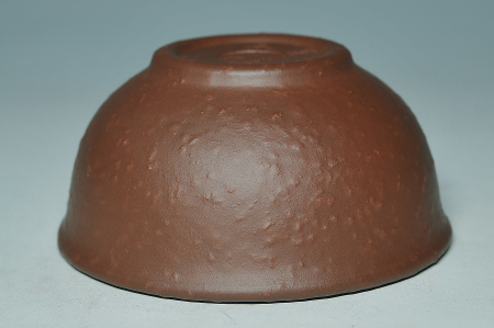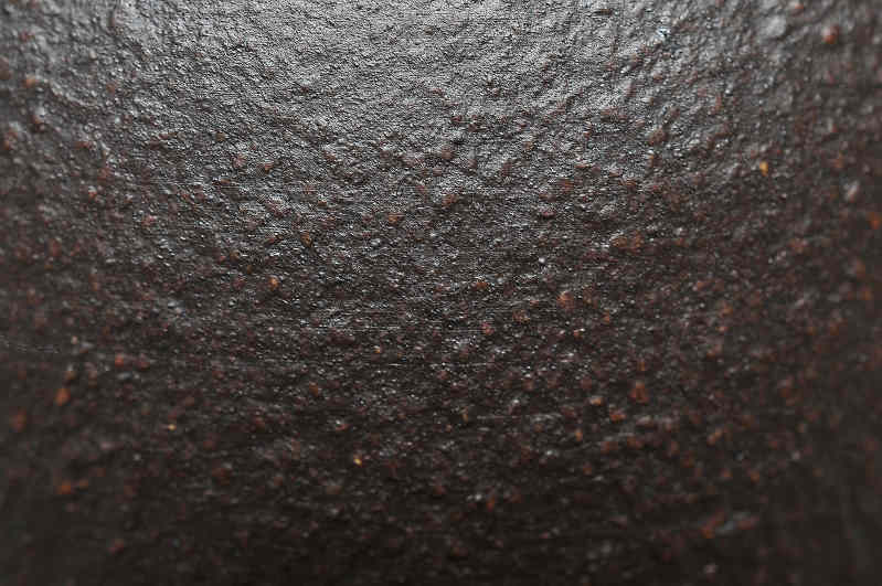 2013年老麻瓜再提少許【魚子鐵砂】泥條,以手工製作“圓之月茶碗”,期讓更多愛好者能擁有並玩賞此稀世級名泥;在經一再要求作家務必多次入窯拼窯溫,以使胎色及茶湯品質達到最極致之“古農真壺級”嚴苛標準後,【魚子鐵砂】意料之外的...,竟燒出包漿的油亮胎表,而...胎色更成為紅棕至極的暗紅黑色...,並略泛紫光!