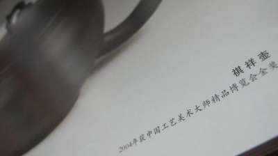 書本上介紹祺祥壺為”2004年獲中國工藝美術大師精品博覽會金獎”