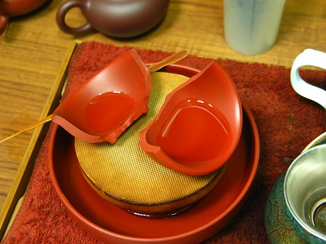 心裡卻只有自責在呻吟:昏頭呀,爲什麽要拿“嫩石黃心”茶碗出來臭顯擺呀,----------嗚嗚嗚---------