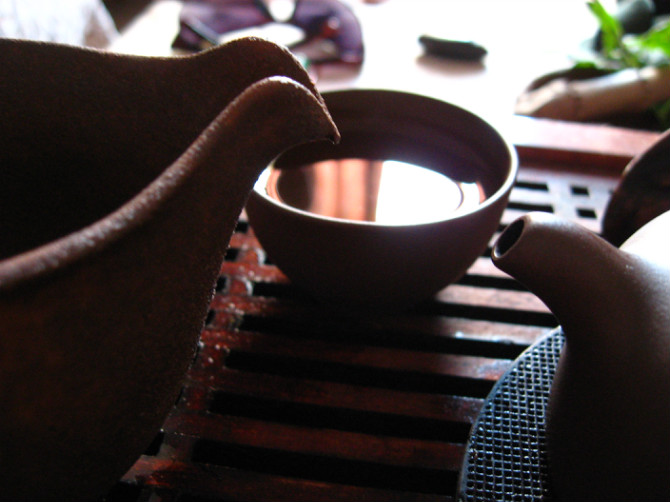 太極陰陽,物極必反,興奮過頭加上飲茶過度之後,夜不能眠,腦海中突然浮現“茶道”二字,日本的茶之道在繁瑣的茶事過程中追求和、敬、清、寂的境界,中國的茶之道在三兩知己或獨飲之中享受茶之真味,歡愉和諧融洽,達到身心愉悅的目的。