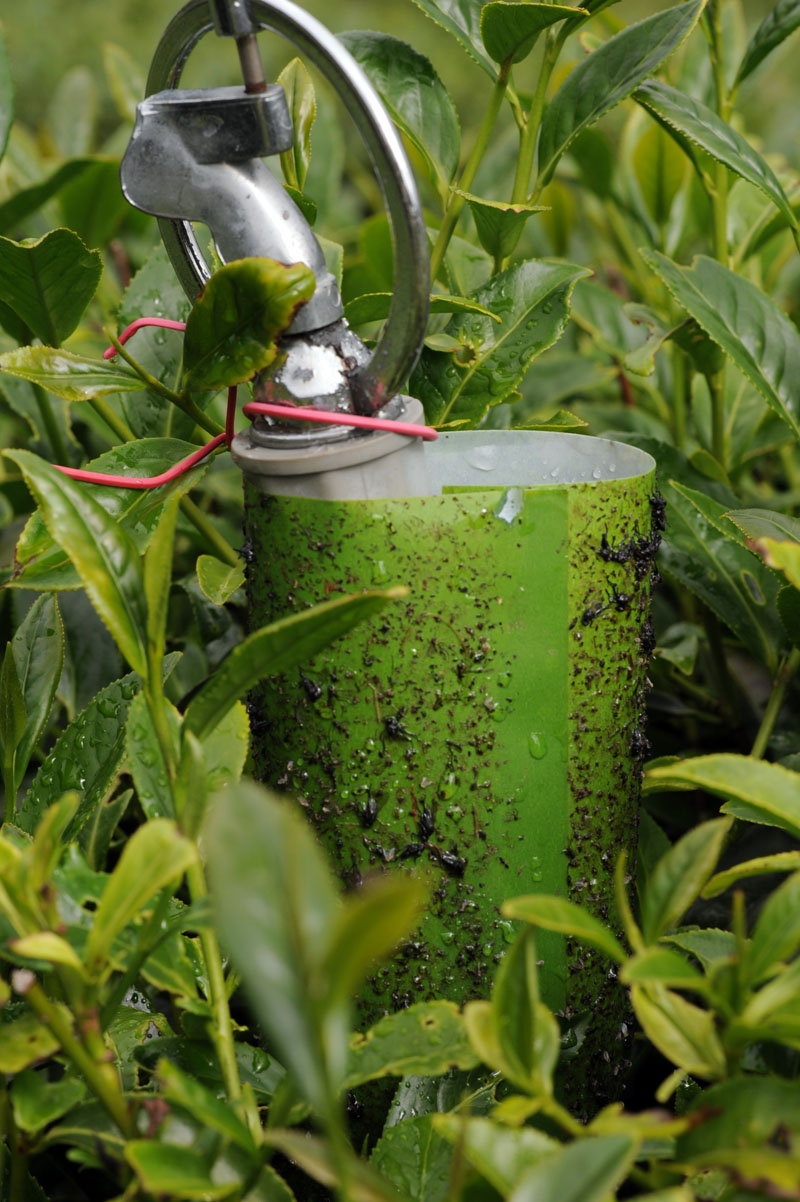 再來一幅生態捕蟲紙。。。 看倌留意早上朝露滋潤著生態的茶樹,高山雲霧出好茶,梨山和麻瓜高岩各領風騷的高山韻!!