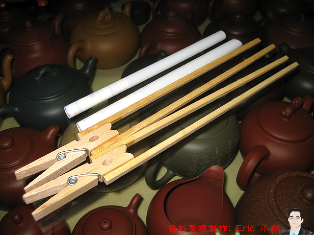 筷子黏在曬衣夾上,箭頭部份把2張名片捲起來塞到吸管裡才不會被夾扁