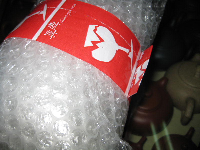 記得文凱剛剛on board時,膠帶都是啪的一聲直接貼起來,我猜真壺專屬的包裝膠帶是有特別設計過的,超黏、很難撕,就算勉強從尾端撕起來也不太容易很順利的完全撕下來,常常搞得大費周章才能把膠帶完全撕起來。