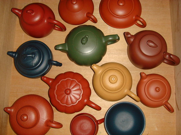 手上有古天青、玉潤大紅袍、石黃心、嫩蜜松碧四把壼,以不入倉的生茶言,不論是何種茶區,石黃心是最不容易令人失望的壼,可以說平均分數最高的; 而古天青可以使茶的某種活潑個性充份展現,而且對於某些茶的香氣發揮的很好,例如下關沱的特殊花蜜香,就表現的非常好,但如果今天上班比較累,喝這麼活的茶就有點受不了了。