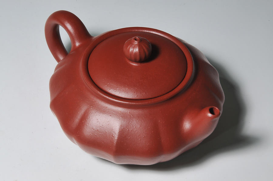韓洪波手製.扁菱壺【烏山赤鐵膽】