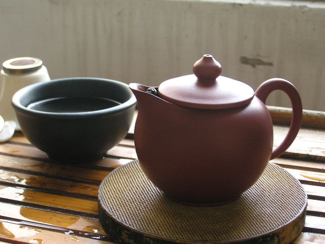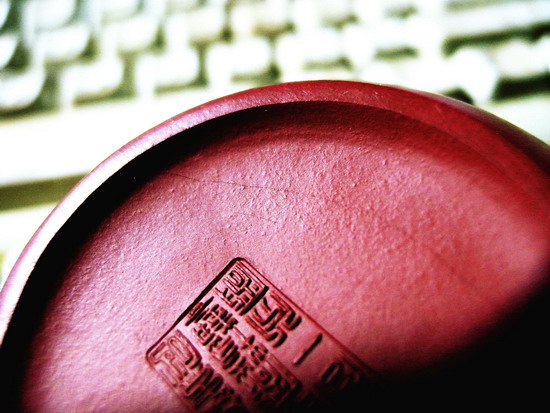 哇!不過這初始的大紅袍茶海果真還是自有她迷人之處..照片中的泥色瞬間已轉成紅中帶紫..真是美麗..就繼續使用吧!更亮麗後請記得再來張寫真呀!