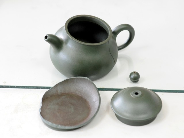 這壺留來欣賞,僅用三秒膠簡單沾黏。碧蓴茶湯的甜,直追滴翠。
