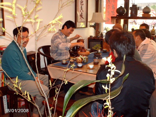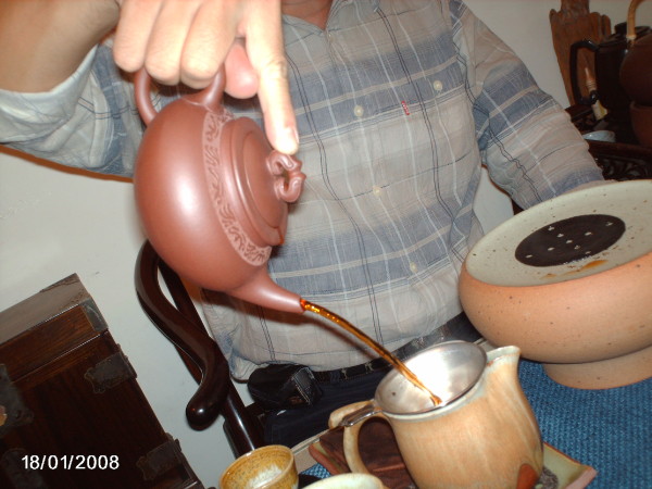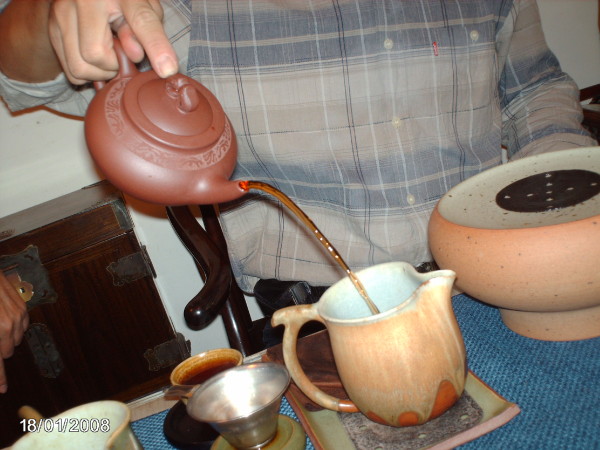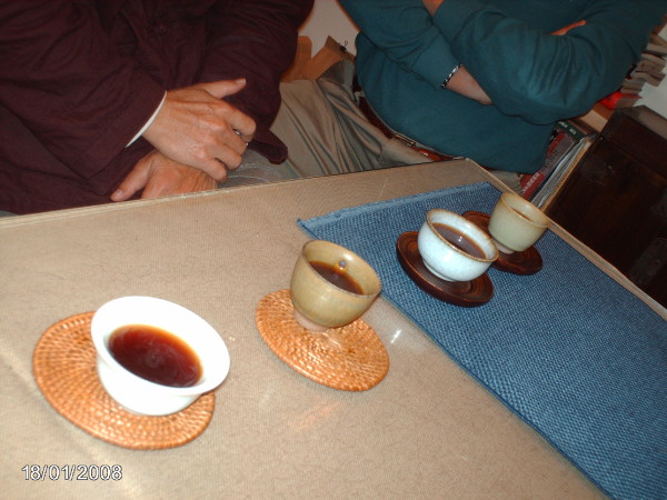 得---老韻與茶氣;在飛來石茶壺裡的紅印陳年普洱茶就好像一位80歲溫文儒雅的老人家,同時有著20來歲氣力活躍............,1月18日下午用飛來石紫碧壺與日月壺來侍候紅印普洱茶,有12位愛好普洱茶的朋友參加相片容後再上........