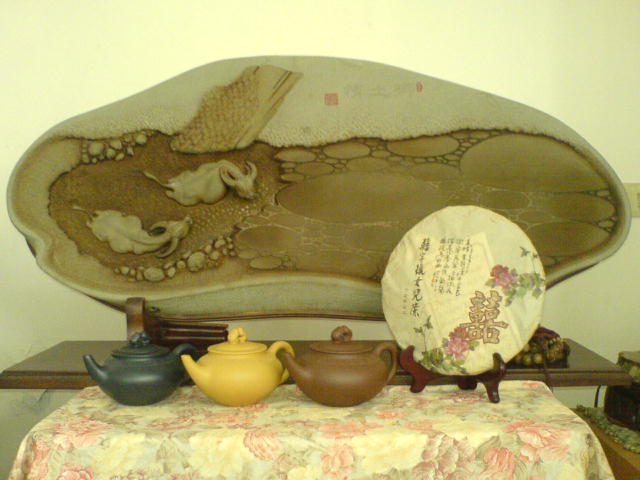 明天(1月18日),在台南藝境茶莊,下午1:30要用飛來石茶壺來泡紅印普洱茶,試試看隕石作的茶壺,是否有那麼大的功效.(日月為壺,紫碧為海)