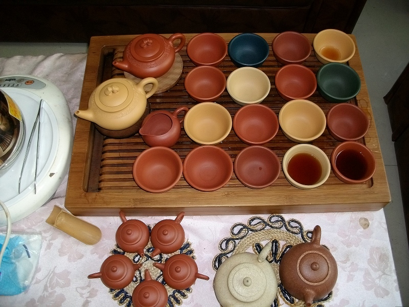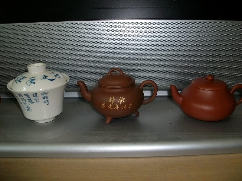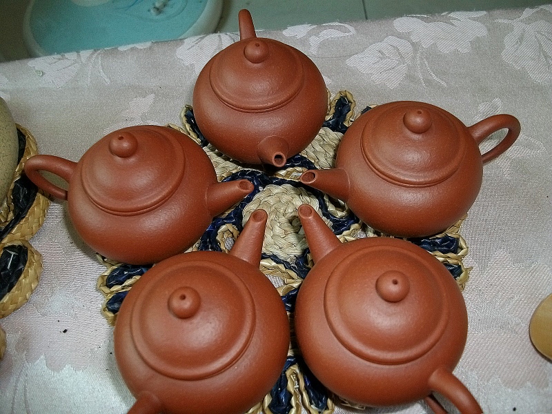 小弟每次泡茶用一壺一海雙杯,就得配上一隨手泡溫壺,一冷水壺囘收溫壺水,一大開水壺泡茶。然後在壺、碗均還是熱騰騰的時候完成整個茶事過程,以確保無驚爆之憂及無茶垢之慮!