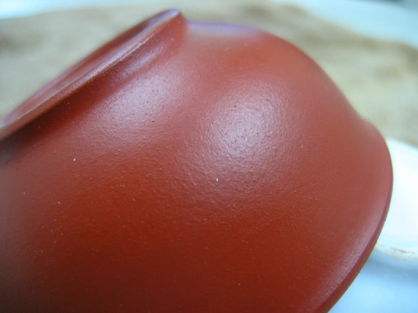 曾經蒼白的面容,在不知不覺中已經隱去,你早已豔光四射,大紅袍的端莊雍容、嫩蜜瑰紅的嫵媚風流、石黃心的神秘莫測,都要臣服於你的熱烈奔放,你似乎同時具備他們所有的優點,但又與他們絕不相同,你的獨立和耀眼,正是最吸引人之處。曾經粗糙的胎表,幾乎一個月的時間就必須要換一條茶巾,這似乎是大紅袍系泥料的最大特徵,不過只要毀掉五六條茶巾,你就能讓我在每一次撫摸中體會到凝脂般柔滑的觸感,浅淡的“水洗红”,早已变作如胶似漆,浓得耀眼。曾經難以捉摸的茶湯表現,也給我帶來新的驚喜,無論前七泡是否成功,你在七泡之後的表現一直都超穩定。當別的泥料只能帶來淡淡如水的惆悵,你卻能頑強地逼出高峰岩茶截然不同的特質來,隱藏在優雅明媚的“前段”和甜蜜溫柔的“中段”之下,絕少爲人所知的“後段”,帶給人的感覺是堅決而剛強,就像剝去表層泥土後的鑽石,冰冷,璀璨,有最致命的美麗,令人驚歎,令人沈迷。