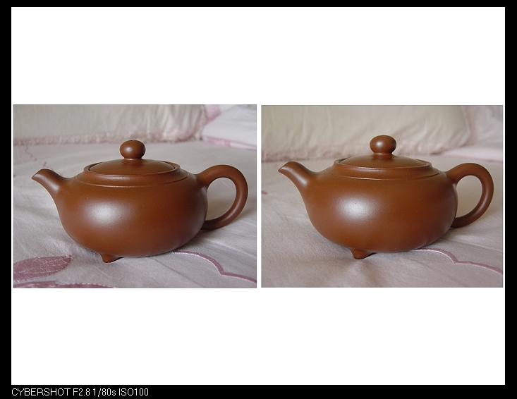 838兄太謙虛了,其实小弟也没什么可以开导的,养壶大体分为四种,一种是经常用手摩挲茶壶,日久茶壶黯然生亮,就象盘玉一样;一种是外养法(有的也叫污衣派、茶湯養壺等等),就是泡茶时经常用茶水去淋壶外表,再通过养壶巾勤擦拭,甚至每天早晨泡茶時,先用壺内茶渣將壺体通體擦拭一遍,日久形成一层比较油亮的包浆,但也有人认为这是和尚光(古人認爲用油手,油布在壺身偕擦才是和尚光);还有一种是内养法(净衣派\素养)就是泡茶时,只用开水淋壶表,让茶油自然从壶内向壶表渗透形成包浆,这样的包浆似玉潔瑩,古韵内敛;最后一种是歪门邪道,什么煮甘蔗润壶、煮豆腐去火气、煮大骨汤吃油之类的,这样的茶壶恐怕只能泡肉骨茶。还有就是用干布擦拭易亮,用湿布擦拭易透,日久精光内斂,產生閽然之光。(小弟干布擦拭一段時間后,改用湿布再擦拭一段時間,然後交替組合)
