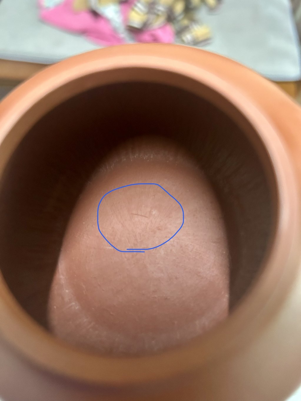 就我個人的經驗來說,這絕不是驚破,驚破不是這樣的,看這個樣子99%是作家製壺時的工具修刮痕跡,我自己雖是真壺迷你咖,但真壺的壺也有個幾十把,修刮痕滿常見的,我個人很喜歡,畢竟這是手工壺才會有的現象嘛,如有謬誤請大家不吝指正