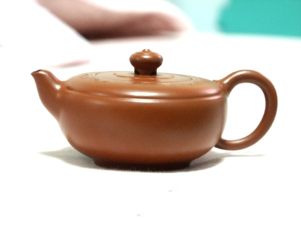 >這把嫩大紅袍石瓢壺•壺身、壺底、皆有刻三刀的字句。壺身比例完美、容量也正好符合我們在真壺泡茶時的需求。真夠我們喝了••之前都擺在櫃中沒注意到它、卻忽然發現這塊泥料的包漿之色很有嫩蜜瑰紅的感覺、熱水沖淋後、水色更加明顯動人、、《不知道有哪位會員朋友有養成後的嫩大紅袍照片嗎?很想看〝〝成品〞〞吶••》