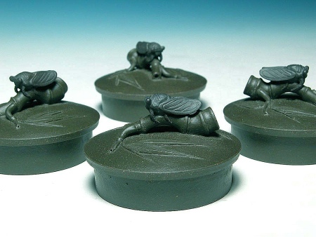 四只蟬蓋...就是四把美壺報銷了。可惜是作者沒有工錢麻家浪費了原料,幸運是得到這四只蟬蓋的兄弟,可以觸摸一次實驗的成品。