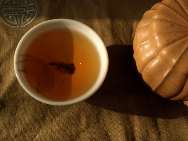 言歸正傳。今晚的茶湯沏得有"表情"了。香不揚而漸明﹐葉在壺中上下舒展。