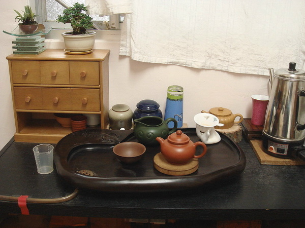 早期與余兄喝茶, 同時喝名間的福壽茶、鹿谷的凍頂茶及高山茶, 慢慢的分出不同海拔的茶味。 以後到凍頂山的彰雅村學習做茶 ,同時到同一山頂的鳳凰村及凍頂村喝茶, 分出同一海拔不同村的不同風味。 再喝梅山、阿里山的高山茶, 以及春茶與冬茶, 用心的品都能分出來。 日子久了跟茶分不開, 跟壺也分不開。 茶不再分海拔與新舊, 只要有熱水, 隨意放些茶,隨意倒出隨意喝。 覺得太淡了,下回時間久一點 ,覺得濃時就加一點水 。有時只想淡一點, 有時又想喝濃一點。