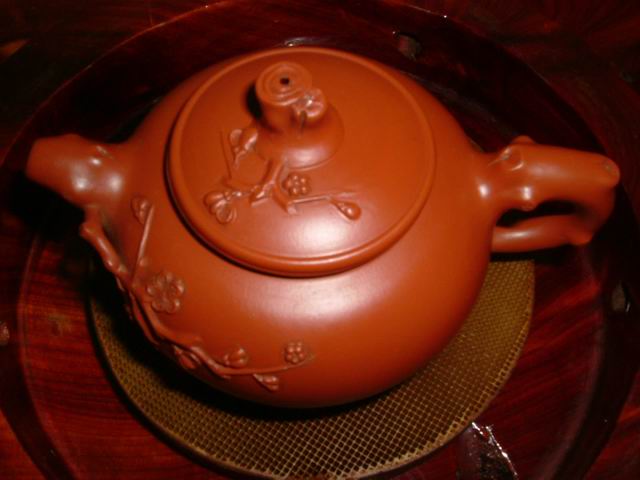 2005年4月25日在山莊帶回了玉潤梅花,一直都將其當掌上明珠般呵護,後來請朋友幫忙迎回了好搭檔滴翠茶海,這將近一年的時間兩位高手合作無間,泡了不少好茶,也漸漸在壺內、外累積起了「內、外功」,外表漸漸變得晶亮動人,內裏則茶垢漸漸累積,外內兼修,集氣宗劍宗於一身...