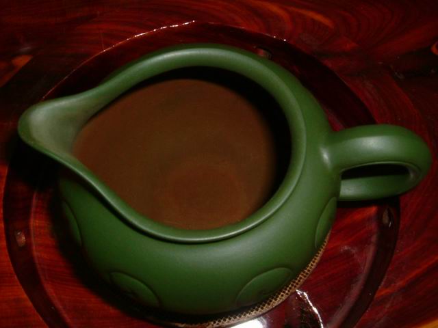 關於滴翠裡面累積的茶垢,也沒有刻意去養,就一直盛茶,終了時用沸水沖洗一陣後放置自然風乾,就變成這個樣子囉!至於茶湯的影響我倒覺得更加甜水,因為都是差不多等級的茶,因次此沒有衝突現象...