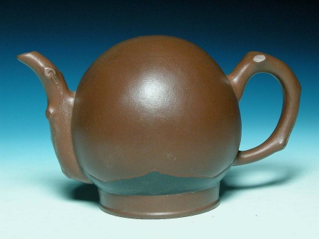 由此圖可看出本壺並無蓋子,其他部份與一般茶壺無異,將這種特殊用途的水注設計成壽桃的樣子,是巧思一件。