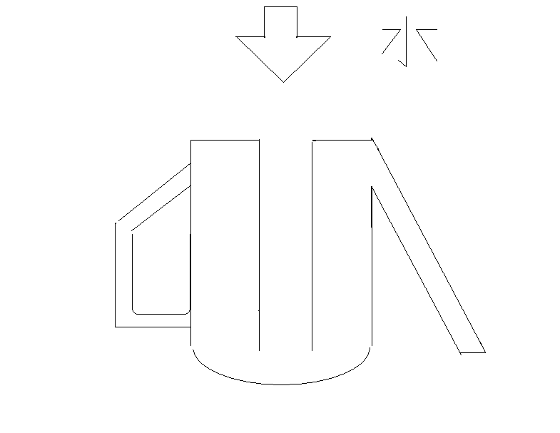 水就經由壺底流入壺中 當L型的水位高於壺口時