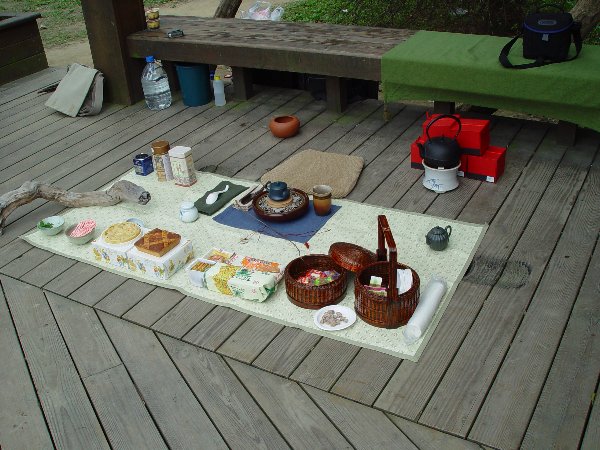 配上一些簡單的派和餅乾.用生鐵壺備水