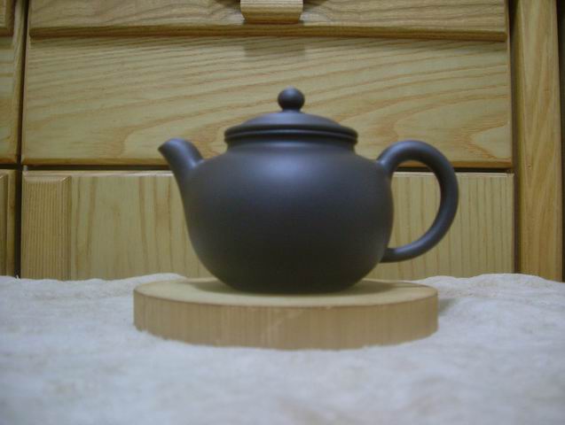 話說3/18文革泥五形之二陣亡後,當晚就和兇手一同到真壺山莊挑選新壺,飯還是要吃,茶仍然得泡,因預算有限外加經驗不足,因此這次仍以低價位壺為目標,在賞壺時同時看到了兩只小蓮子壺,劉國強的作品,分別是翰墨泥與紅橙泥,樸實內斂的壺形很快地吸引了我的目光,相較之下翰墨泥的亮黑色成色均勻,紅橙泥那把成色較差略遜一籌,因而我的第二把壺誕生了!