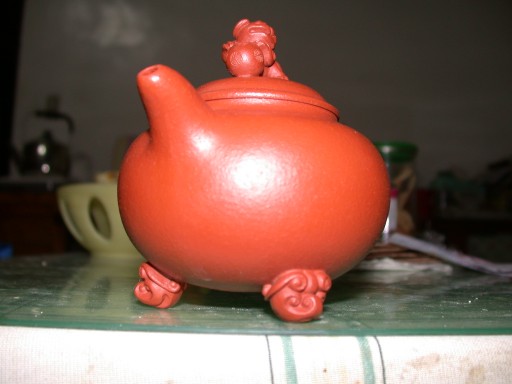 今天拿到壺了!分別是景舟式小掇只及瑞獅壺,兩把壺比在網上看更要美。先說景舟式小掇只壺,乍看下有點顧老之味,但多了一份秀雅之氣,水色紅艷無比。