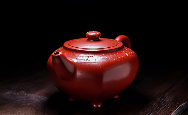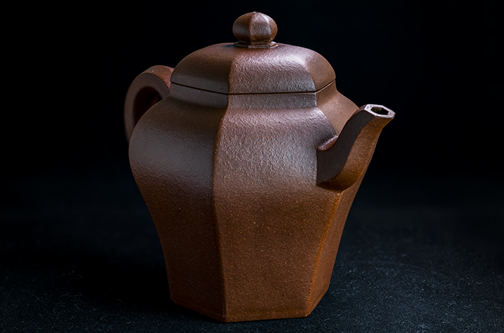 這把不知名高手製的灑金大紅袍六方思亭又亮又透美極了,壺腹飽滿壺嘴把比例拿捏適當,手持平衡感極好