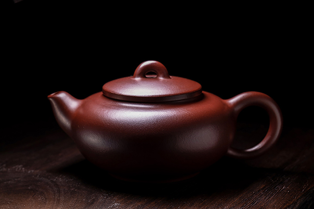 個人很喜歡這把壺的造型,比一般掇只壺稍扁的壺身及蓋加上拉高的肩線別有韻味,趙庄朱砂養起來很透很迷人