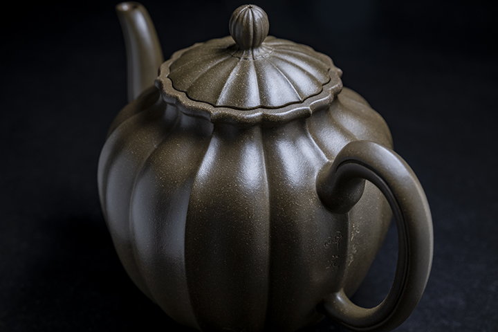 另一角度,看這筋紋器陰陽面多吸引人,貞裕很特殊的把壺名刻於壺把中間壺身上。