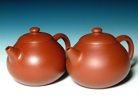 上圖左邊的【古農真壺稀世名泥壺系列•圓匏壺】~香山小朱泥,只泡養約8次,而右壺仍未使用過,已可見二壺的色澤與溫潤度之大大不同,隨著使用之日長,除出現驚人的變色率,使泥料愈變愈朱紅,及溫潤之美外,茶湯之品質更是日進一日喔!